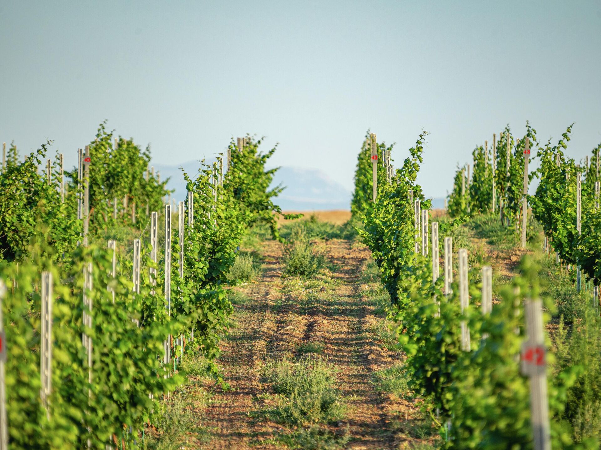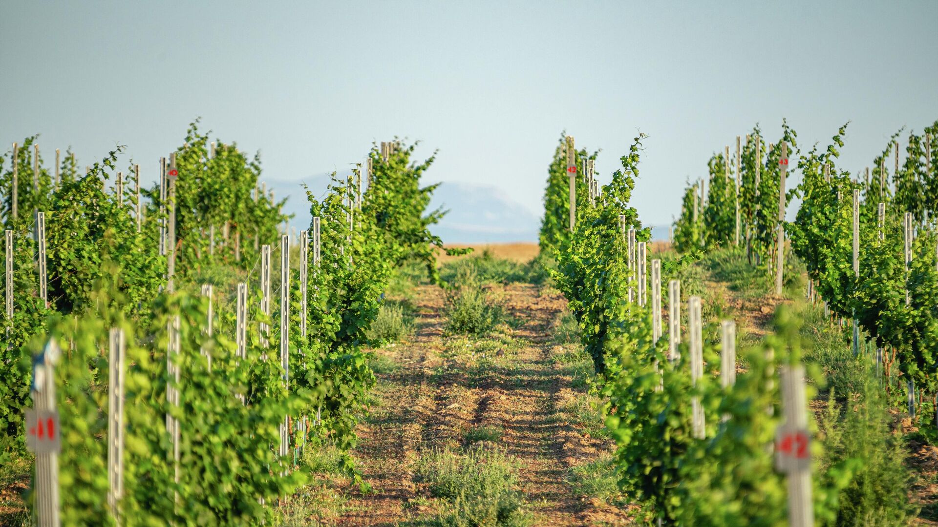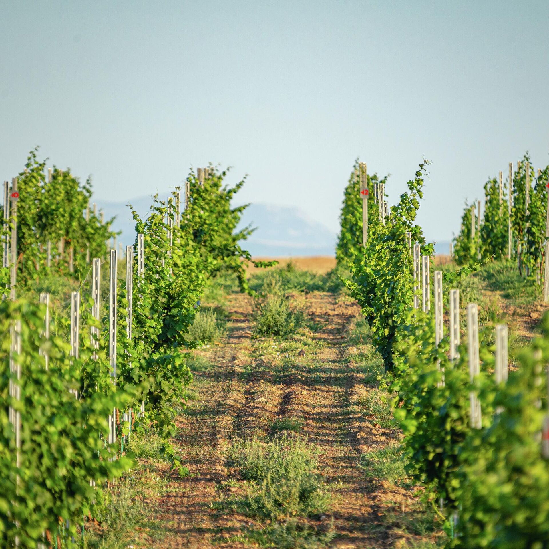 На данный момент под насаждениями 133 га, из них плодоносящих 56 га. На разных участках посажено от 2222 до 4000 кустов на га. Экспозиция виноградников – с севера на юг. Первые посадки были заложены в 2021 году белым сортом Шардоне и двумя красными сортами Каберне Совиньон и Мерло. В настоящее время в хозяйстве 13 сортов. 7 белых – Шардоне, Рислинг Рейнский, Алиготе, Ркацители, Пино Блан, Кокур Белый, Сары Пандас, и 6 красных – Каберне Совиньон, Мерло, Каберне Фран, Саперави, Пино Нуар и Кефесия.