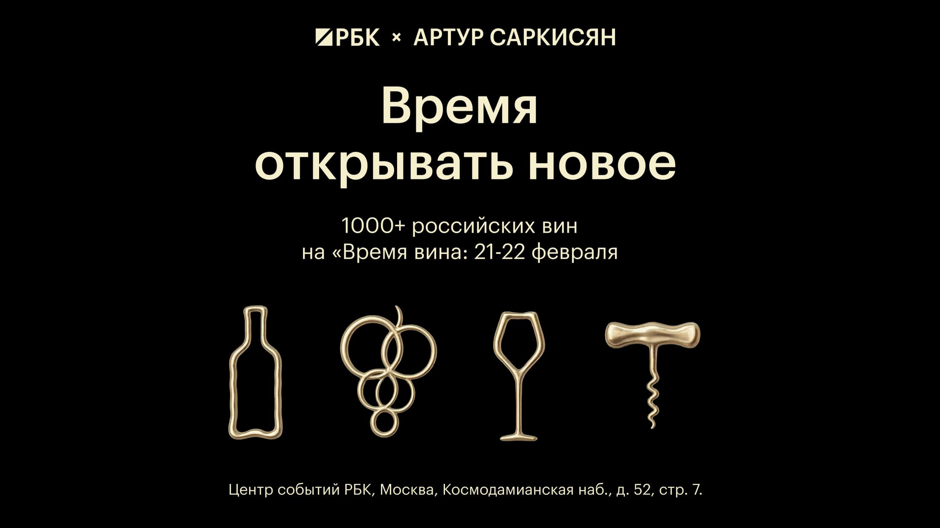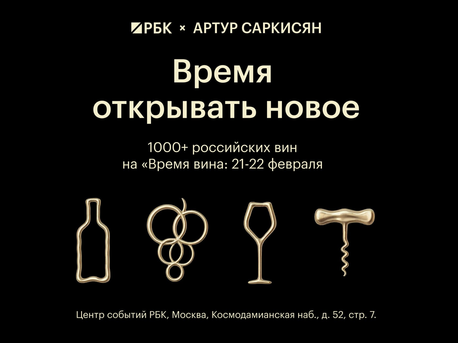 "Время вина: weekend" — одно из самых значимых событий в мире вина. Оно пройдет 21 и 22 февраля в Центре событий РБК. Это кульминация "месяца вина", который РБК организует второй год подряд. 19 февраля состоится закрытое индустриальное мероприятие. На мероприятии Артур Саркисян представит исследование рынка вина в России.